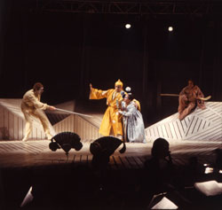 In contrast to the large forces needed for HOUDINI (symphony-orchestra, steel drums, mixed choir, seven soloists, dancers and acrobats), my next opera AAP only required twelve musicians, five soloists and a group of martial artists. It was premièred in the 1980 Holland Festival and retaken in 1998.