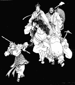 AAP was the result of a birthday present to me by my life-long friend and collaborator Floris Guntenaar. The booklet (Marten Toonder's favourite cartoon) contained one of the many Monkey-stories from the seventeenth century that are still very popular in China and elsewhere. It was published again in Peking in 1964, during the otherwise devastating Cultural Revolution of Mao, and soon found its way to the West. | |